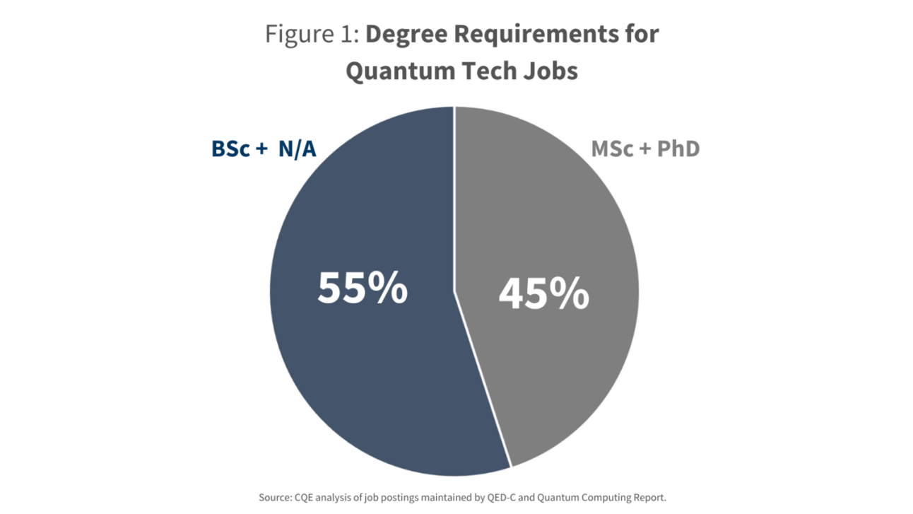 Less than half of all quantum technology jobs require a graduate degree, according to a recent analysis from CQE. The study also showed that only one-third of quantum-related jobs in industry require a graduate degree and that 80 percent of academic quantum jobs require a PhD.